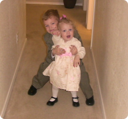 That next Sunday, Christian and Vivian were fooling around in the hall and apparently, Jared took some pictures of them while I got ready (I just found these today). They are so funny at posing…