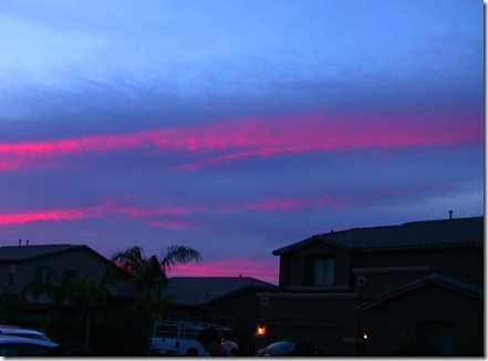 She noticed this baby girl who’s about one year and insisted that she sit by her and hold hands. Then as she was sitting there, Vivian looked down at the little girls’ hands and noticed that her fingernails weren’t painted and Vivian got very concerned. That is one thing Vivian LOVES, to get her nails painted and she will stand perfectly still until I’m all done and they’re dry. She amazes me.The sky that night was lovely. I think it must have been singing!